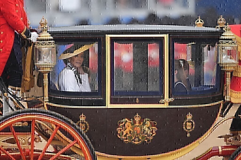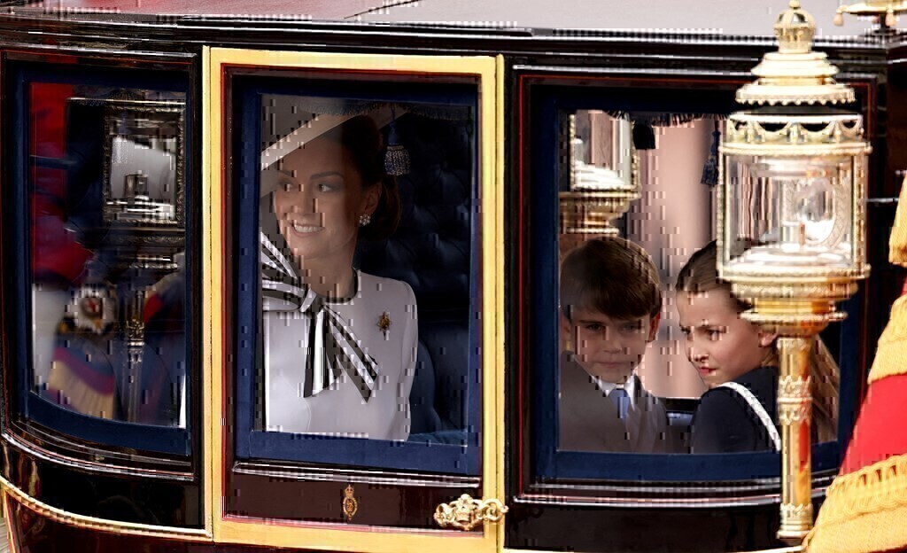 Η Κέιτ ήταν σε μια καλυμμένη άμαξα με τα τρία της παιδιά πριν παρακολουθήσει το «Trooping the Colour», μια ετήσια στρατιωτική παρέλαση κοντά στα Ανάκτορα του Μπάκιγχαμ που σηματοδοτεί τα επίσημα γενέθλια του Βρετανού μονάρχη, Βασιλιά Καρόλου.