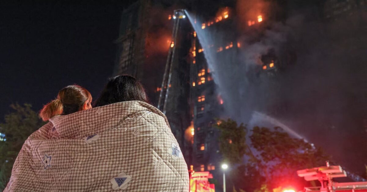 Η πυρκαγιά ξέσπασε το απόγευμα της Τετάρτης 26 Νοεμβρίου, για άγνωστους μέχρι στιγμής λόγους, προφανώς στα κατώτερα τμήματα στο προστατευτικό δίχτυ που κάλυπτε το εργοτάξιο ανακαίνισης και το οποίο προστάτευε από τη σκόνη και την πτώση αντικειμένων. Η φωτιά επεκτάθηκε γρήγορα και στους άλλους πύργους, πιθανόν λόγω του ύπαρξης πάνελ από αφρό και της χρήσης μπαμπού στις σκαλωσιές αντί μετάλλου.