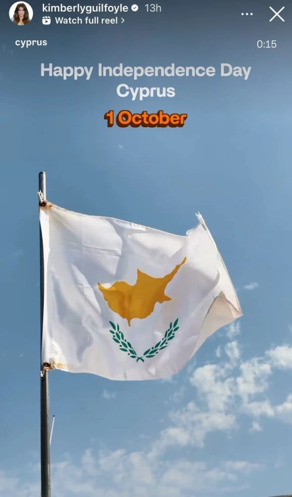 Συγκεκριμένα, η Γκίλφοϊλ δημοσίευσε ένα σύντομο βίντεο με την κυπριακή σημαία να κυματίζει, γράφοντας στη λεζάντα: «Χρόνια Πολλά, Κύπρο – 1η Οκτωβρίου». Σε επόμενη ανάρτησή της, ευχήθηκε ξανά: «65 χρόνια Κυπριακής Ανεξαρτησίας – Συγχαρητήρια».