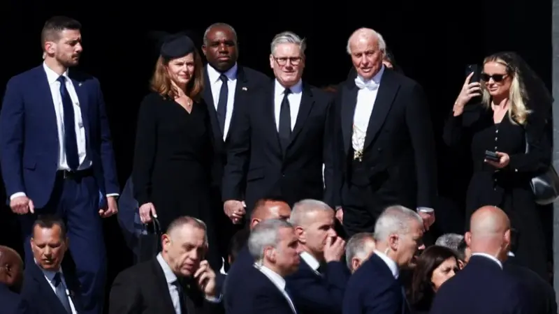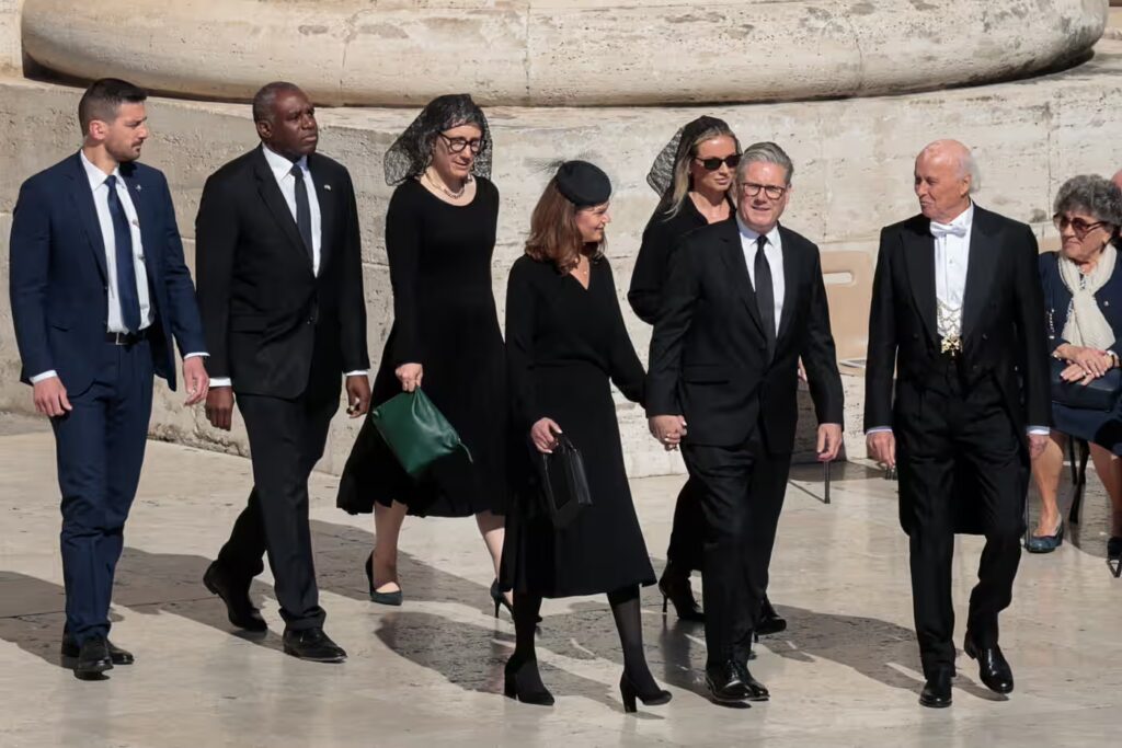 Ο Βρετανός πρωθυπουργός, Κιρ Στάρμερ, και ο Πρίγκιπας της Ουαλίας – που παρευρέθηκε εκ μέρους του Βασιλιά Καρόλου Γ΄ – απέτισαν και αυτοί φόρο τιμής πριν ενωθούν με το εκκλησίασμα στην Πλατεία του Αγίου Πέτρου, όπου, σύμφωνα με το Βατικανό, βρίσκονταν 200.000 άνθρωποι για τη νεκρώσιμη θεία λειτουργία.