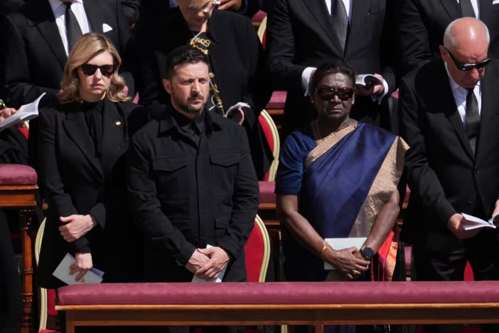 Το συγκεντρωμένο πλήθος των ηγετών του κόσμου χειροκρότησε καθώς ο Ουκρανός πρόεδρος αποχωρούσε από τη Βασιλική του Αγίου Πέτρου, όπου απέτισε φόρο τιμής μπροστά στο φέρετρο του Ποντίφικα πριν από την τελετή της κηδείας.