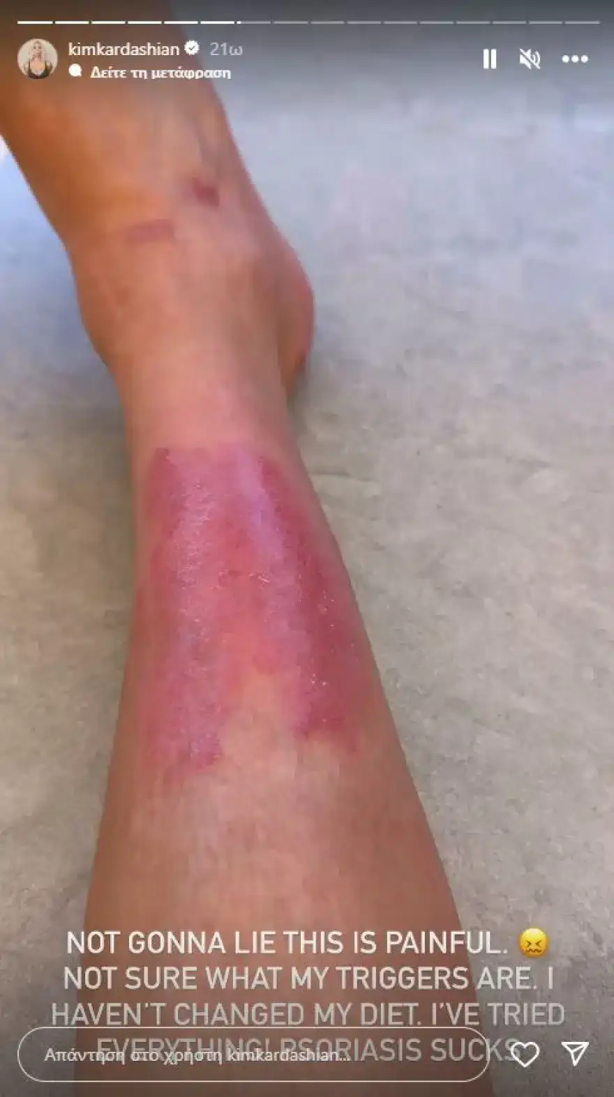 «Δεν θα πω ψέματα, αυτό είναι πολύ επώδυνο. Δεν είμαι σίγουρη τι ακριβώς συμβαίνει και επιδεινώθηκε. Δεν άλλαξα τη διατροφή μου. Έχω δοκιμάσει τα πάντα, αλλά η ψωρίαση είναι χάλια», έγραψε η Κιμ Καρντάσιαν.