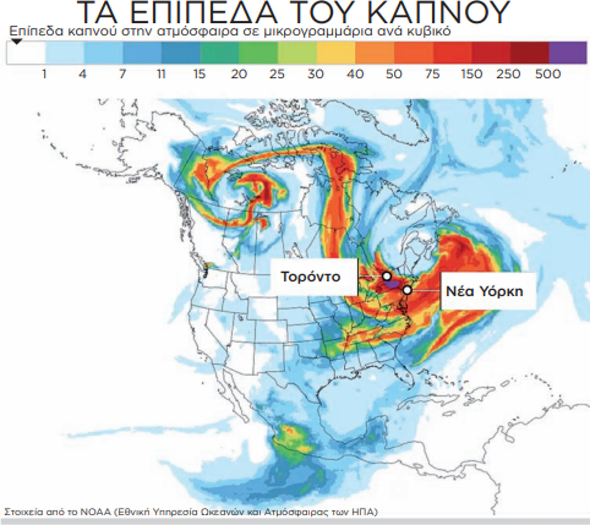 Η Υπηρεσία Προστασίας του Περιβάλλοντος των ΗΠΑ ανέφερε πως τα φαινόμενα είναι πιθανό να διαρκέσουν ημέρες. Η πύρινη λαίλαπα, με τα εκατοντάδες μέτωπα στον Ανατολικό Καναδά, έχει καταστρέψει πάνω από 27 εκατομμύρια στρέμματα γης, οκταπλάσια έκταση σε σχέση με τον μέσο όρο των τελευταίων 30 ετών. Η γαλλόφωνη καναδική επαρχία Κεμπέκ καταμετρά από την αρχή της χρονιάς 443 πυρκαγιές, έναντι 200 κατά μέσο όρο την αντίστοιχη περίοδο των τελευταίων δέκα ετών.
