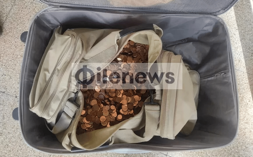 Ωστόσο, δεν παρέδωσε ούτε επιταγή, ούτε μετρητά, αλλά μια βαλίτσα βάρους 50 κιλών, που περιείχε 15.500 νομίσματα των 1, 2, 5 και 10 σεντ.