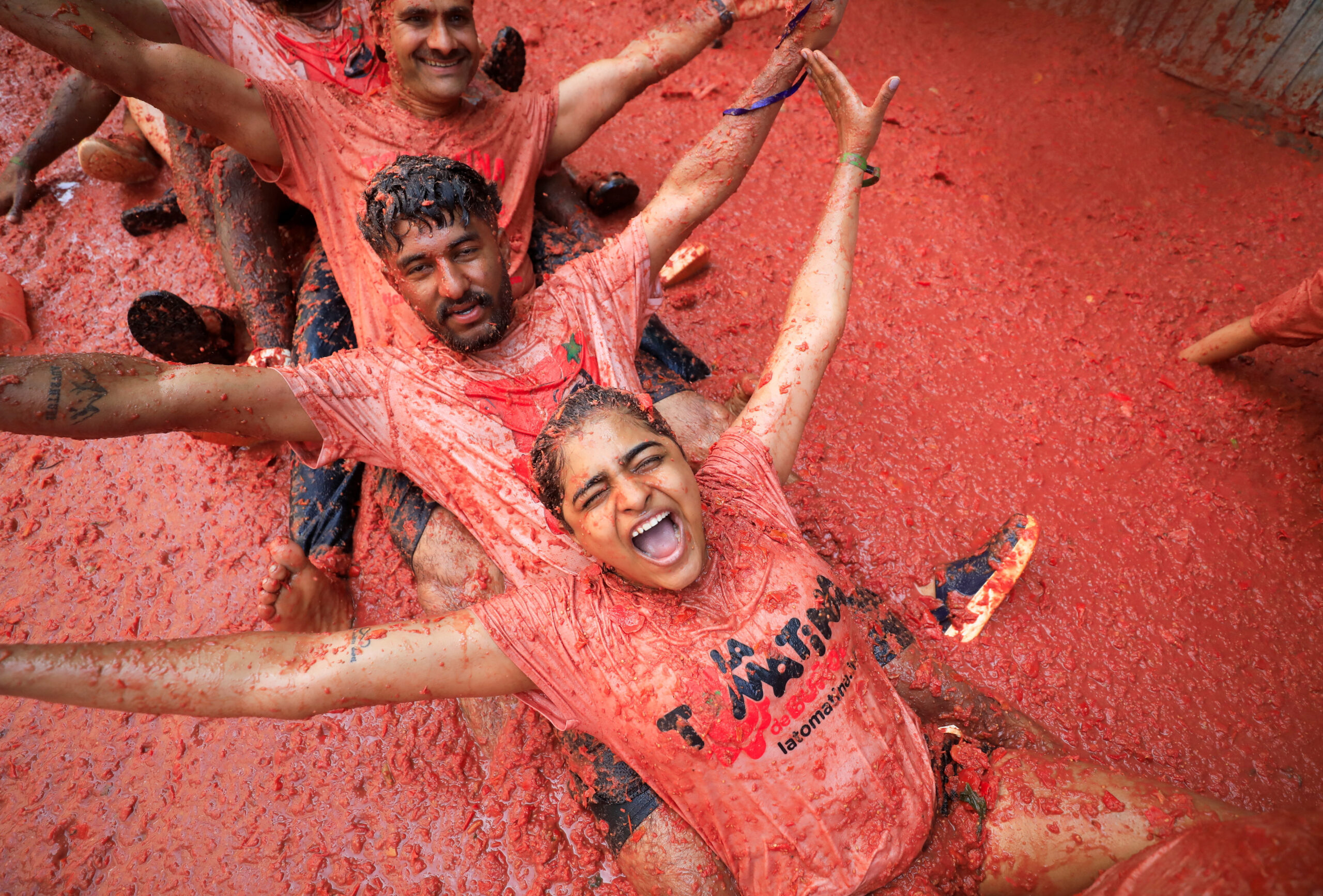 Περίπου 20.000 άνθρωποι κατέκλυσαν τους δρόμους, συμμετέχοντας στον πιο… εκρηκτικό ντοματοπόλεμο του κόσμου, πετώντας πάνω από 120 τόνους ώριμες ντομάτες και δημιουργώντας ένα εντυπωσιακό «κόκκινο ποτάμι».