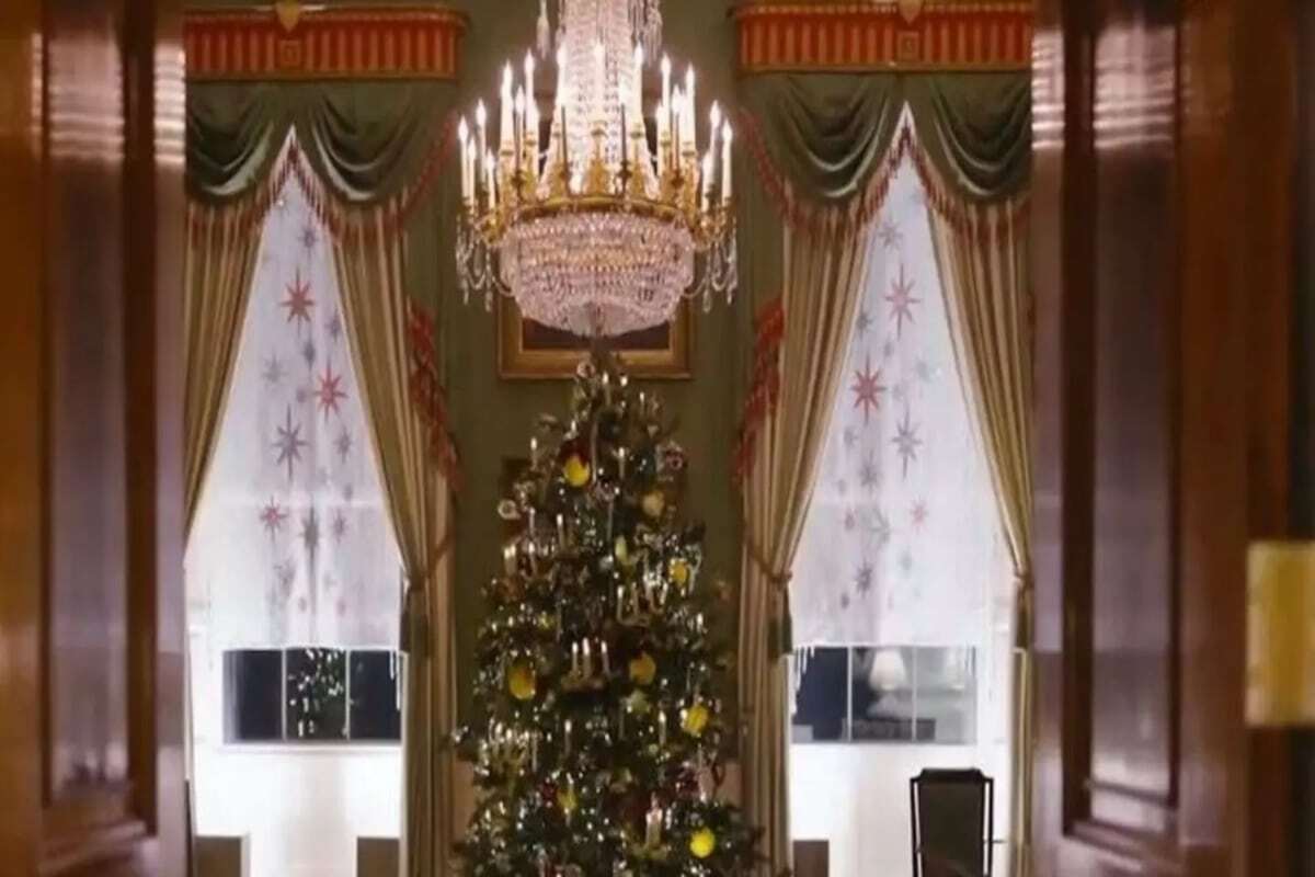 Συγκεκριμένα, 98 χριστουγεννιάτικα δέντρα, περισσότερα από 143.000 λαμπάκια και σχεδόν 34.000 στολίδια στολίζουν τις αίθουσες στον Λευκό Οίκο, τα φετινά Χριστούγεννα.