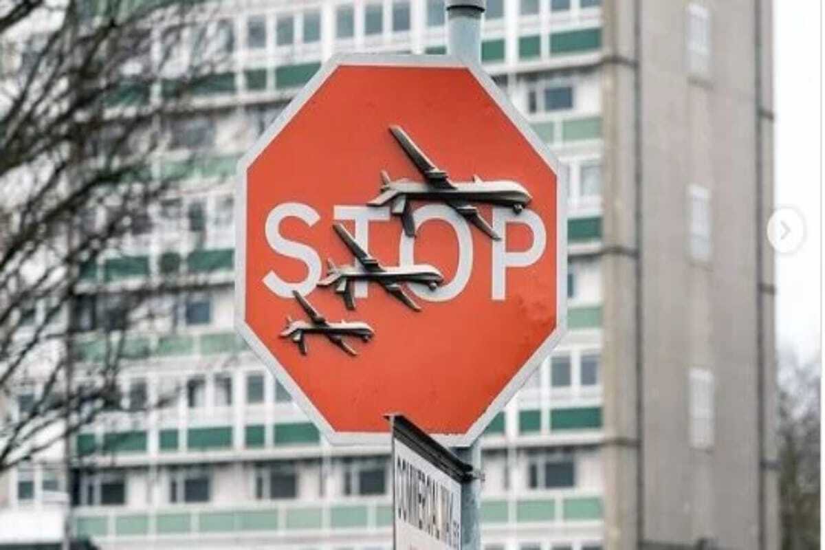 Ο εν λόγω καλλιτέχνις επιβεβαίωσε ότι το έργο του που απεικονίζει μια πινακίδα διακοπής κυκλοφορίας που καλύπτεται από τρία αεροσκάφη ήταν δικό του.