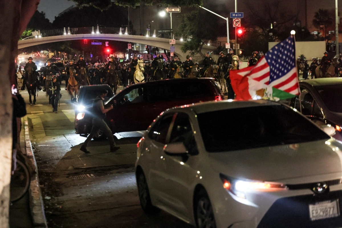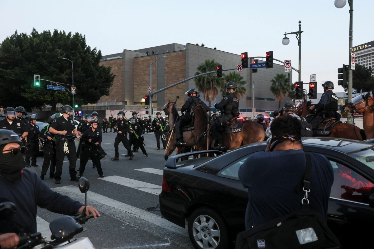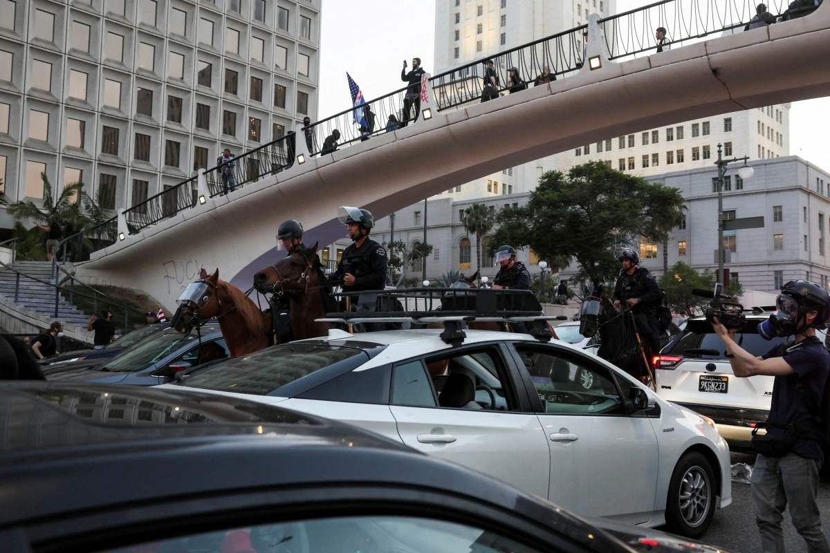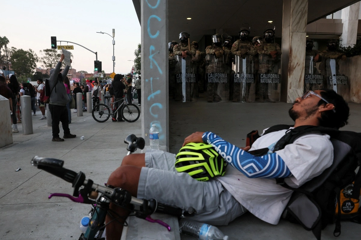 Η ανάπτυξη της Εθνοφρουράς της Καλιφόρνια και 700 πεζοναυτών έγινε ενώ συνεχίζονται συγκρούσεις στο κέντρο του Λος Άντζελες, με δυνάμεις ασφαλείας να χρησιμοποιούν δακρυγόνα για τη διάλυση των διαδηλωτών.