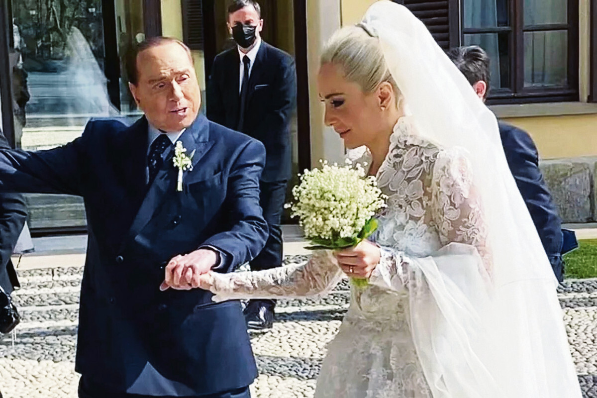 Εχοντας καεί από τις προηγούμενες σχέσεις του, τα παιδιά του Μπερλουσκόνι τον πίεσαν ασφυκτικά να μην παντρευτεί το νέο του «αμόρε» κι εκείνος το δέχτηκε. Για να της κάνει όμως το χατίρι να ντυθεί νυφούλα, οργάνωσε πέρυσι τον Μάρτιο έναν εικονικό «γάμο» στην πολυτελή Βίλα Τζερνέτο, βόρεια του Μιλάνου, από τον οποίο έλειπαν μόνο ο παπάς κι ο δήμαρχος. Η «γαμήλια» δεξίωση-υπερπαραγωγή με 60 καλεσμένους στοίχισε 400.000 ευρώ και επικρίθηκε πολιτικά, επειδή διοργανώθηκε λίγες μέρες μετά τη ρωσική εισβολή στην Ουκρανία.