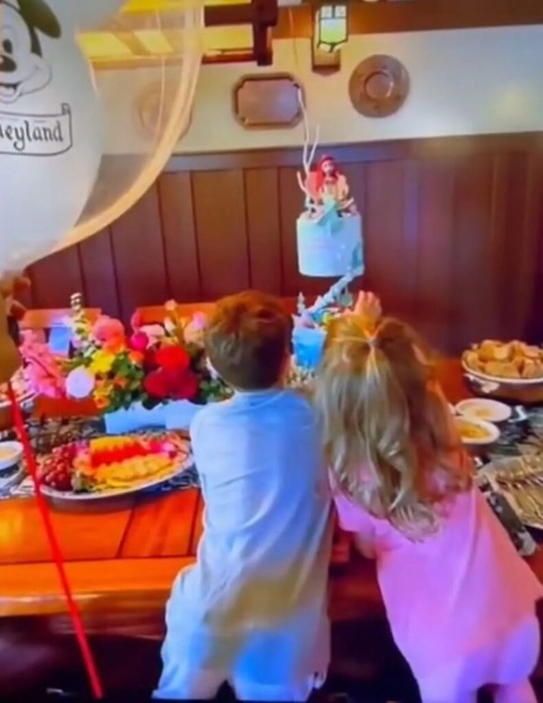 Η εικόνα, η οποία παρουσιάστηκε στο ντοκιμαντέρ «The Happiest Story on Earth: 70 Years of Disneyland» του ABC News, δείχνει τα δύο παιδιά να κοιτούν ένα τραπέζι γεμάτο φαγητά, μπαλόνια της Disney και μια τούρτα με θέμα τη «Μικρή Γοργόνα». Τα πρόσωπά τους δεν φαίνονται, ωστόσο αυτό που εντυπωσίασε τους θαυμαστές ήταν τα μακριά, πλούσια κόκκινα μαλλιά της Λίλιμπετ.