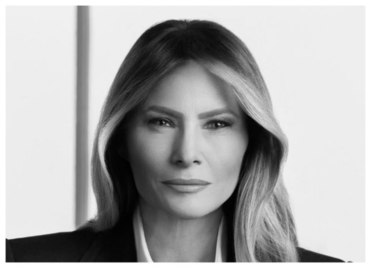 Το ασπρόμαυρο πορτρέτο, που τραβήχτηκε στο Yellow Oval Room της Ουάσινγκτον, δείχνει τη Μελάνια Τραμπ σε ένα κομψό μαύρο κοστούμι, με σακάκι και παντελόνι που συνδυάζεται με λευκό πουκάμισο. Το πρώην μοντέλο ποζάρει με αυτοπεποίθηση, τα χέρια της ακουμπούν σε ένα τραπέζι, κοιτώντας απευθείας στην κάμερα, ενώ το Μνημείο της Ουάσινγκτον διαγράφεται στο βάθος μέσα από ένα μεγάλο παράθυρο.