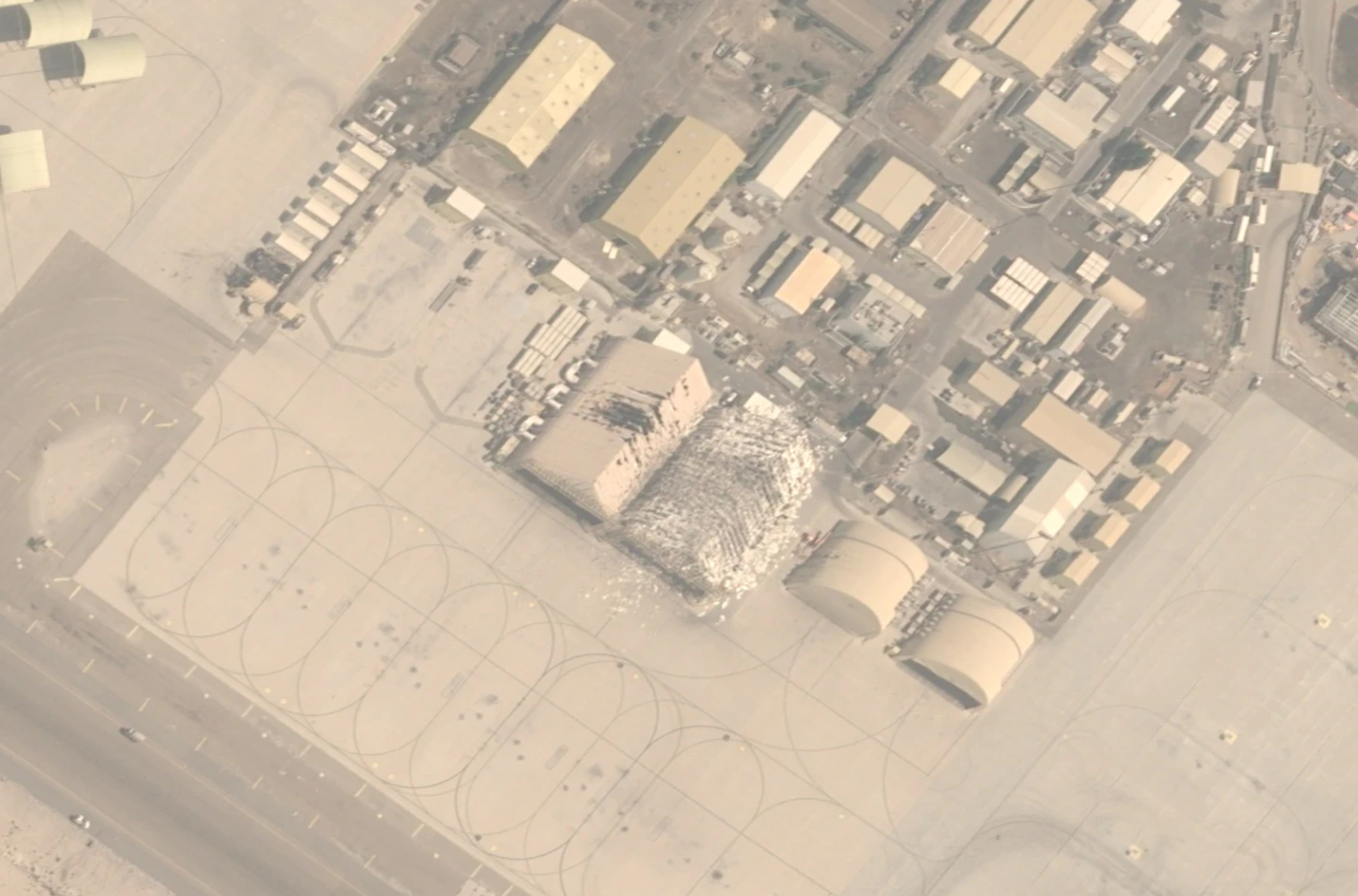 Δορυφορικές εικόνες της 15ης Μαρτίου δείχνουν ζημιές στην αεροπορική βάση Αλ Ντάφρα στο Αμπού Ντάμπι. Φθορές εντοπίζονται σε υπόστεγα στα βορειοδυτικά της εγκατάστασης, ενώ άλλο υπόστεγο στα νοτιοανατολικά φαίνεται να έχει καταστραφεί από πυρκαγιά, με γειτονική κατασκευή να έχει υποστεί ζημιές στην οροφή. Η βάση φιλοξενεί περίπου 2.000 Αμερικανούς στρατιώτες και αποτελεί σημαντικό επιχειρησιακό κόμβο για drones και μαχητικά F-35. Για χρόνια, οι ΗΠΑ περιορίζονταν σε γενικόλογες αναφορές περί εγκατάστασης στη «νοτιοδυτική Ασία», μέχρι που τα ΗΑΕ αναγνώρισαν ανοικτά την αμερικανική παρουσία.