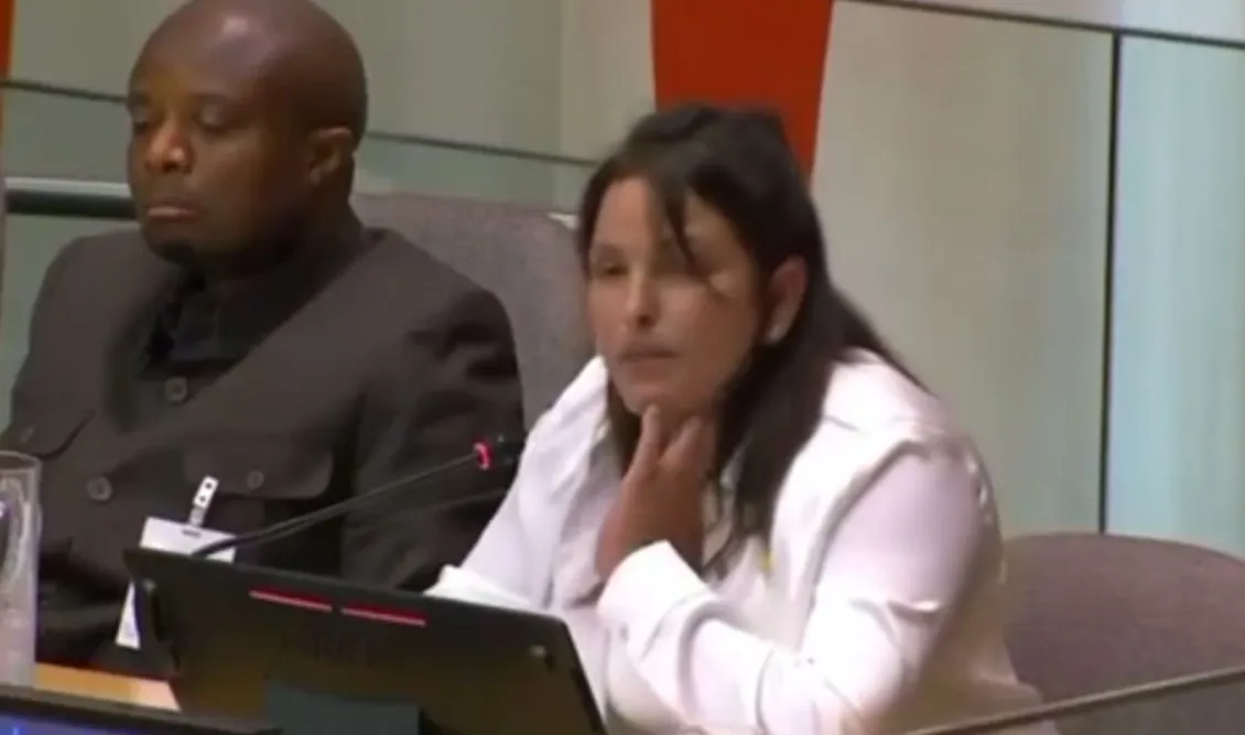 Η 40χρονη δικηγόρος απηύθυνε ομιλία στο Συμβούλιο Ασφαλείας του ΟΗΕ και περιέγραψε με γλαφυρό τρόπο τη μεταχείρισή της στη Λωρίδα της Γάζας. «Ήμουν μόνη, αλυσοδεμένη από τους αστραγάλους με μεταλλική αλυσίδα, χωρίς να μπορώ να κουνηθώ και αναγκασμένη να ικετεύω για να χρησιμοποιήσω την τουαλέτα», είπε.