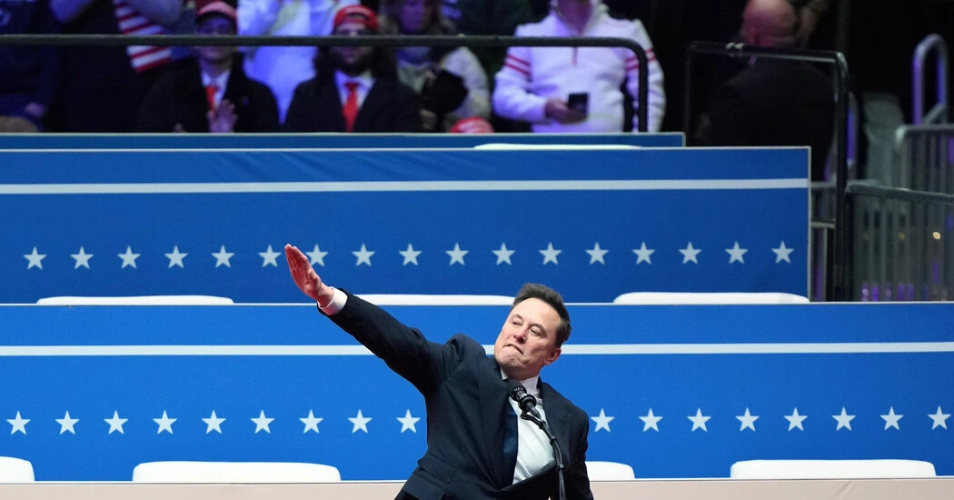 Το αφεντικό —μεταξύ άλλων— του X (κοινωνική δικτύωση), της SpaceX (διάστημα) και της Tesla (αυτοκινητοβιομηχανία) εκφώνησε ομιλία επί σκηνής στην Capital One Arena, όπου είχαν συγκεντρωθεί οπαδοί του Ντόναλντ Τραμπ για εκδήλωση του νέου προέδρου των ΗΠΑ μερικές ώρες μετά την ορκωμοσία του.
