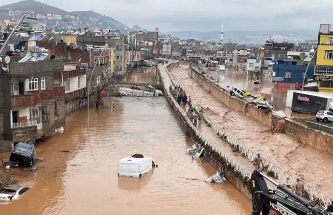 Οι εικόνες από τη γειτονική χώρα είναι συγκλονιστικές, καθώς οι λάσπες, φερτά υλικά, αυτοκίνητα και άνθρωποι γίνονται μία μάζα, που παρασύρεται δίχως κανέναν έλεγχο από τους χειμάρρους.