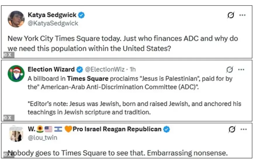 Άλλα σχόλια ανέφεραν: «Τι απεχθές, διχαστικό μήνυμα», «Οι μόνοι που θα το εκτιμήσουν είναι αυτοί που είναι ήδη με το μέρος σας. Είναι απίστευτα ασεβές και αποξενώνει όλους τους άλλους», «Ενδιαφέρουσα διαφήμιση! Ο Ιησούς γεννήθηκε στη Βηθλεέμ της Ιουδαίας, πριν από την ονομασία Παλαιστίνη. Ο σημερινός ισχυρισμός αντικατοπτρίζει την πολιτιστική ταυτότητα, όχι την ιστορία. Προκαλεί μια καλή συζήτηση για την κληρονομιά έναντι της γεωπολιτικής», «Ο Ιησούς γεννήθηκε Εβραίος στη Βηθλεέμ, η οικογένειά του ήταν εβραϊκή».
