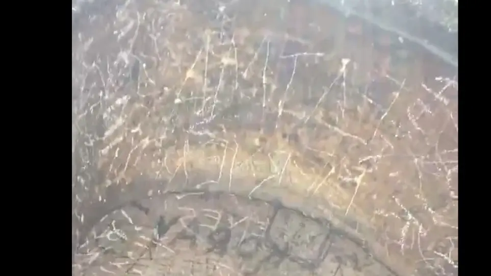 Το βίντεο δείχνει ότι στη στήλη στήριξης υπάρχουν graffiti με ονόματα και σχήματα (π.χ. καρδιές) που έχουν χαραχτεί με αιχμηρό αντικείμενο, σε εσωτερικό χώρο.
