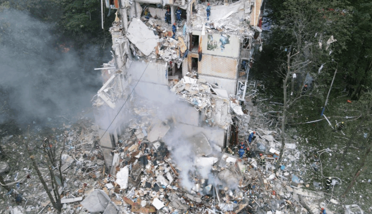 Πύραυλος «έπληξε πολυκατοικία» με αποτέλεσμα να «καταστραφεί εξ ολοκλήρου τμήμα της», πρόσθεσε, διευκρινίζοντας ότι σωστικά συνεργία κατάφεραν να βγάλουν από τα συντρίμμια δυο επιζώντες.