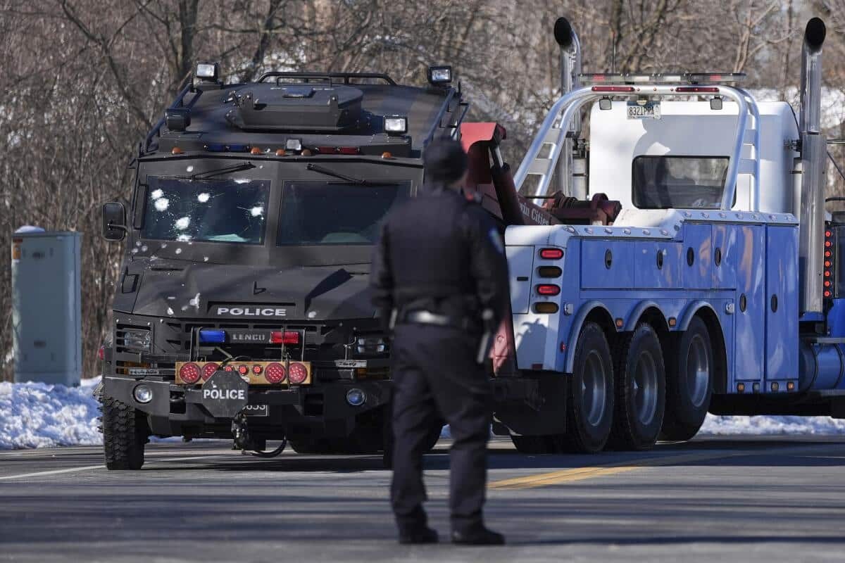 Πλάνα που μετέδωσε το τηλεοπτικό δίκτυο CBS εικονίζουν θωρακισμένο όχημα μονάδας επέμβασης με εμφανή τουλάχιστον επτά χτυπήματα από σφαίρες στο παρμπρίζ. Την περασμένη εβδομάδα, στην πόλη Κάνσας (κεντρικές ΗΠΑ) ένας άνθρωπος σκοτώθηκε και άλλοι 21 τραυματίστηκαν εν μέσω της εορταστικής παρέλασης για τη νίκη ομάδας της πόλης στο Super Bowl.