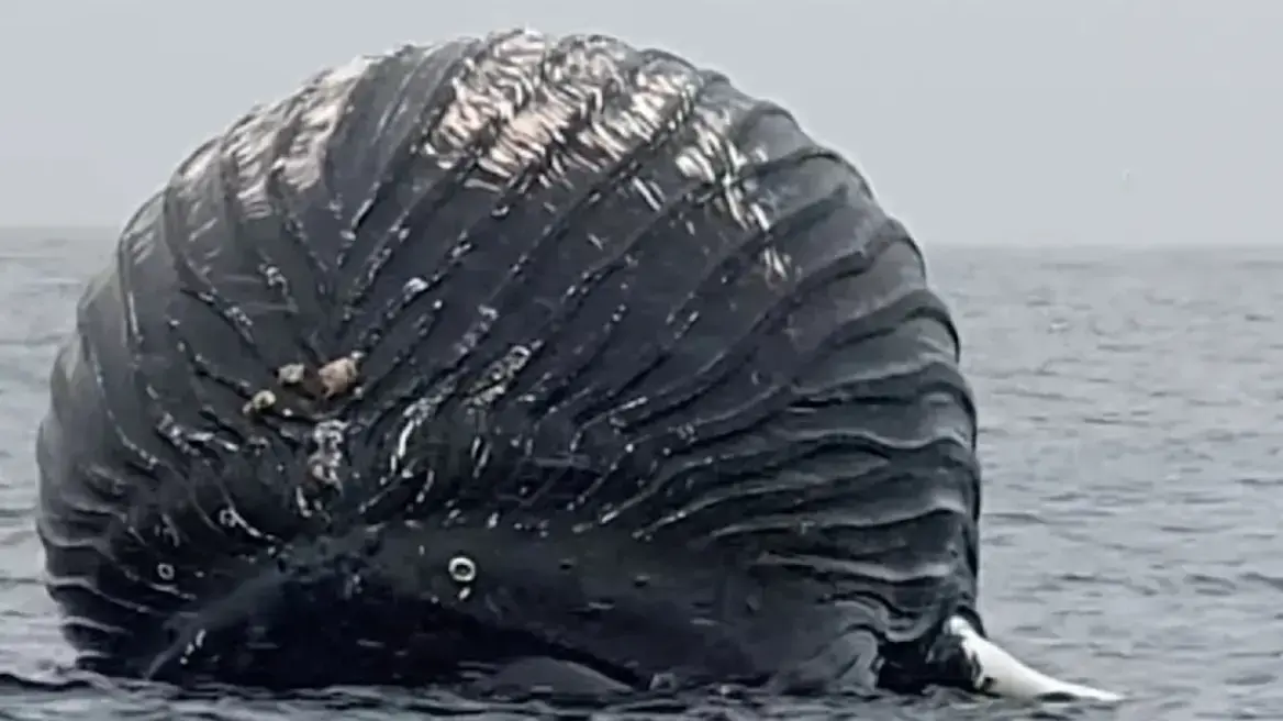 Οι φάλαινες φουσκώνουν σαν τα μπαλόνια μετά τον θάνατό τους επειδή το σώμα τους γεμίζει με αέρια, καθώς αποσυντίθεται. Αυτή η νεκρή μεγάπτερη φάλαινα ήταν αρκετά μεγάλη όσο ήταν ζωντανή. Ο έμπειρος ψαράς υπολογίζει ότι το αρχικό της μήκος έφθανε τα 15 μέτρα και το βάρος της τους 40 τόνους.