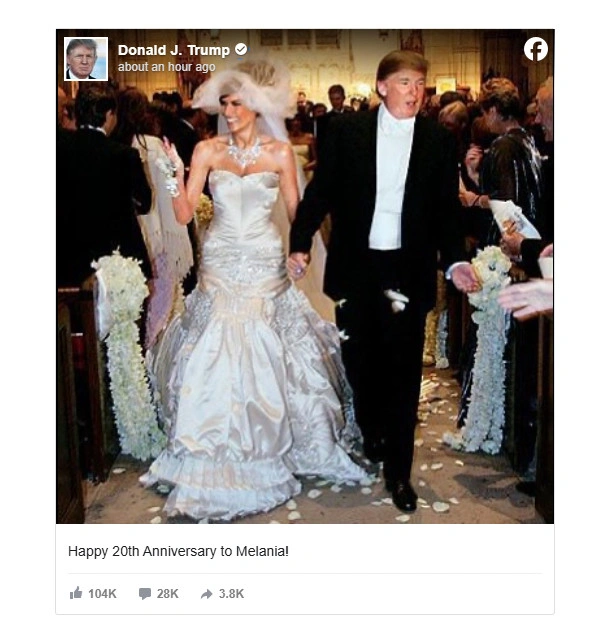 «Γιορτάζοντας 20 χρόνια με την όμορφη σύζυγό μου και την απίστευτη Πρώτη Κυρία μας, τη Μελάνια. Είσαι μία εξαιρετική σύζυγος και υπέροχη μητέρα».