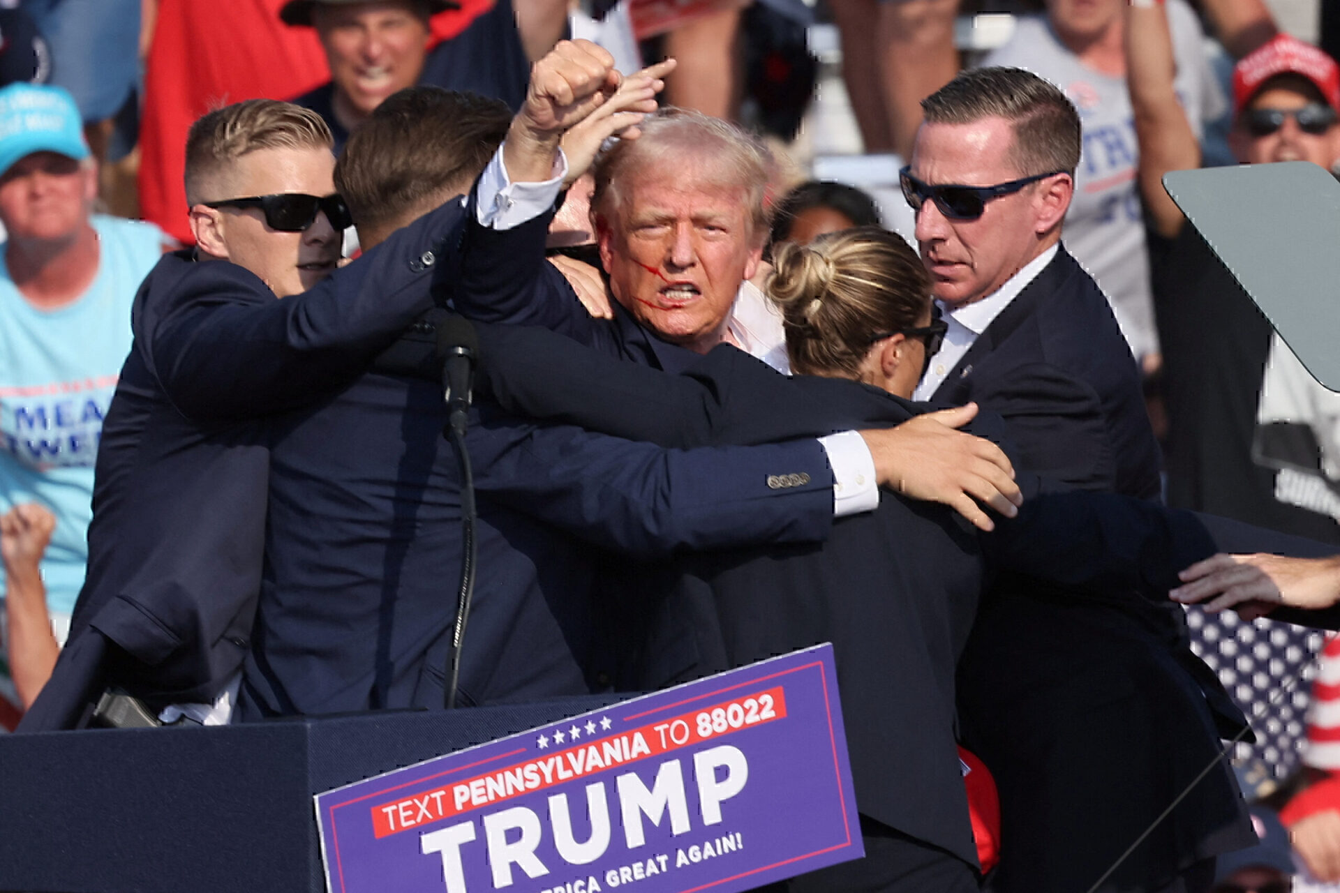 Η απόπειρα κατά της ζωής του Ντόναλντ Τραμπ είναι η πιο σημαντική στιγμή των τελευταίων δεκαετιών, σημειώνει η Telegraph. Μια ιστορική εικόνα, που καταγράφηκε από φωτογράφο του Associated Press, δείχνει τον Τραμπ να σκοντάφτει, να στάζει αίμα και να περιβάλλεται από πράκτορες της Μυστικής Υπηρεσίας.