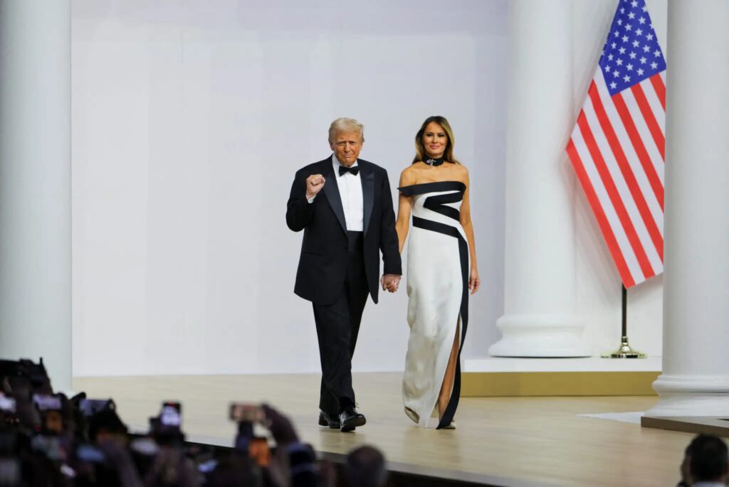 Η Μελάνια Τραμπ κατάφερα για μία ακόμα φορά να λάμπει φορώντας ασπρόμαυρο φόρεμα με ακάλυπτους τους ώμους της ενώ ο Τραμπ φόρεσε ένα κλασικό ένα μαύρο σμόκιν.