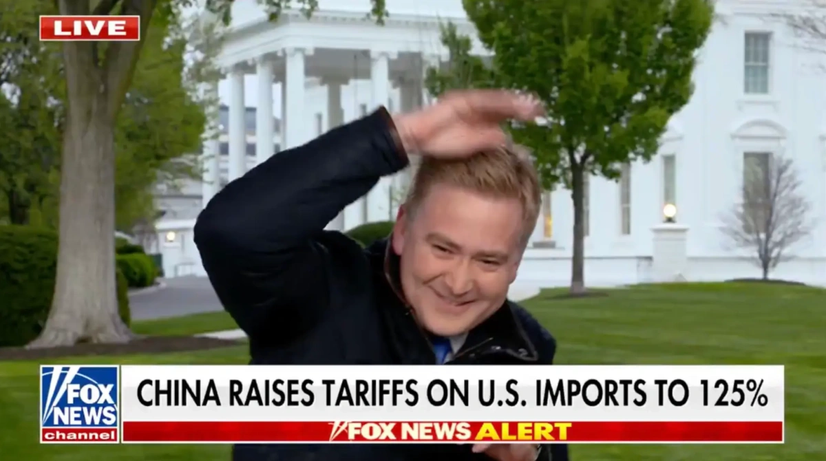 Ο ανταποκριτής του Fox News, Πίτερ Ντούσι, ξεκίνησε τη μέρα του κουνώντας τα χέρια του — όχι για να πάρει τον λόγο από τον πρόεδρο — αλλά επειδή μια μεγάλη δεκαοχτούρα τον πέρασε για… δέντρο.