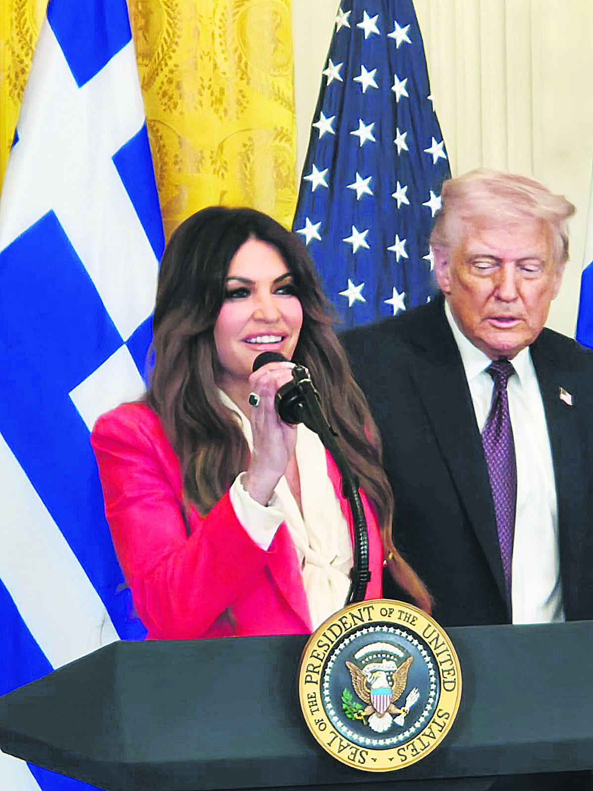 Από αυτά που δεν πέρασαν απαρατήρητα, ήταν ότι η υποψήφια πρέσβης των ΗΠΑ στην Ελλάδα έκανε τον σταυρό της, αλλά κυρίως ότι ο Αμερικανός πρόεδρος την κάλεσε να ανέβει δίπλα του στη σκηνή, δείχνοντας οικειότητα και εμπιστοσύνη, όπως σχολίαζαν οι καλεσμένοι. Ηταν άλλωστε η πρώτη φορά που πρόεδρος των ΗΠΑ καλεί στη σκηνή έναν πρέσβη στην ελληνική γιορτή, πόσω μάλλον ένα πρόσωπο προτεινόμενο για την πρεσβεία.