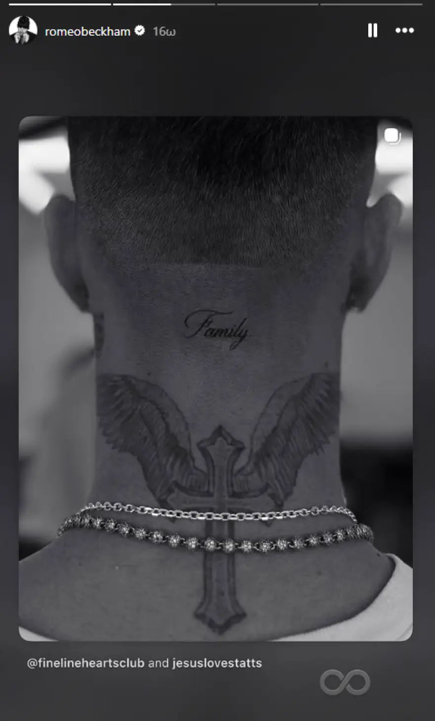 Ο 23χρονος μοιράστηκε στο Instagram μια ασπρόμαυρη φωτογραφία με τη λέξη «family» χαραγμένη στο πίσω μέρος του λαιμού του, μέσα από στούντιο στο Λονδίνο.