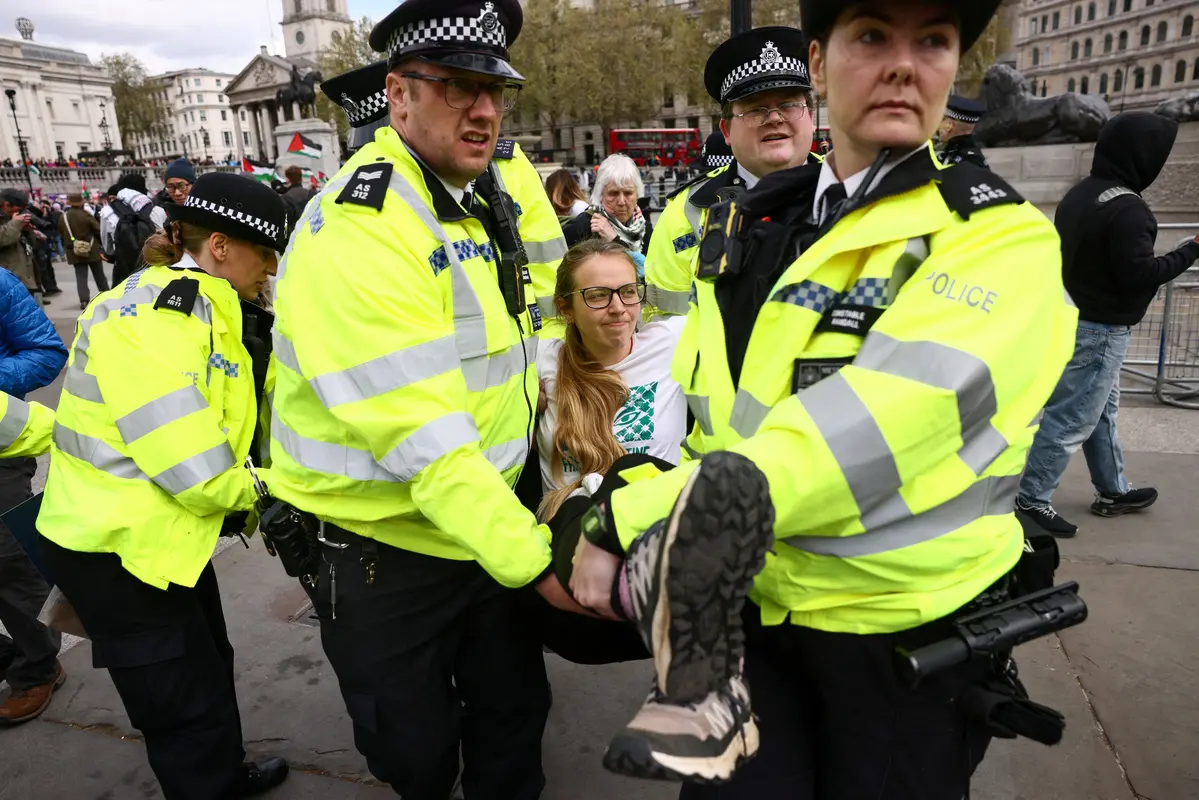 Εκατοντάδες άνθρωποι συγκεντρώθηκαν χθες (11/04) το μεσημέρι στην πλατεία Τραφάλγκαρ για να συμμετάσχουν σε καθιστική, σιωπηρή διαμαρτυρία, ειρηνικό sit-in, με τους περισσότερους να κρατούν πλακάτ στο οποίο είχαν γράψει «εναντιώνομαι στη γενοκτονία, υποστηρίζω την Palestine Action».