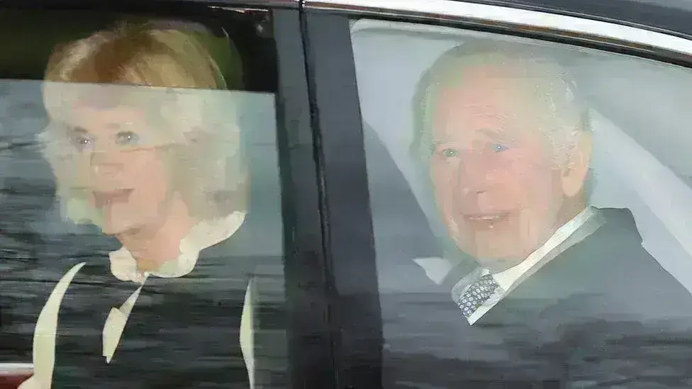 Πλάνα δείχνουν πλήθη θαυμαστών να έχουν παραταχθεί για να δουν τους μονάρχες να φεύγουν με τα αυτοκίνητά τους περικυκλωμένοι από την ασφάλεια.