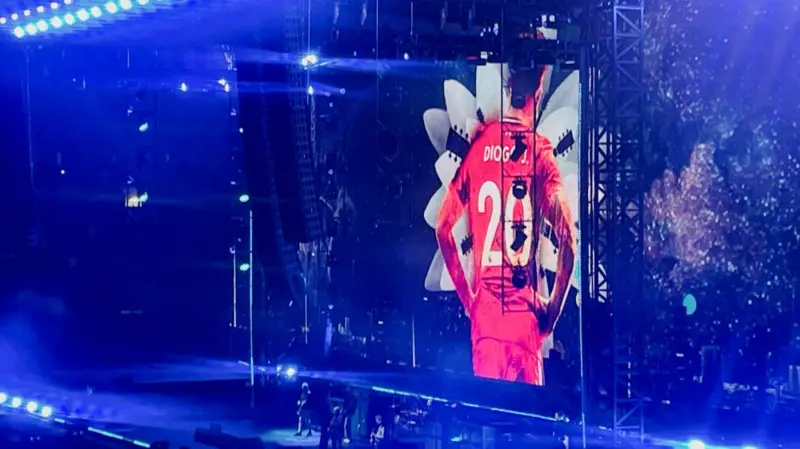 Στο Κάρντιφ, μπροστά σε 75.000 θεατές, οι Oasis ανέβηκαν για πρώτη φορά μαζί στη σκηνή μετά από 16 χρόνια. Κατά την εκτέλεση του ιστορικού τραγουδιού “Live Forever”, εμφανίστηκε πίσω τους μια μεγάλη προβολή με το πρόσωπο του Ντιόγκο Ζότα.