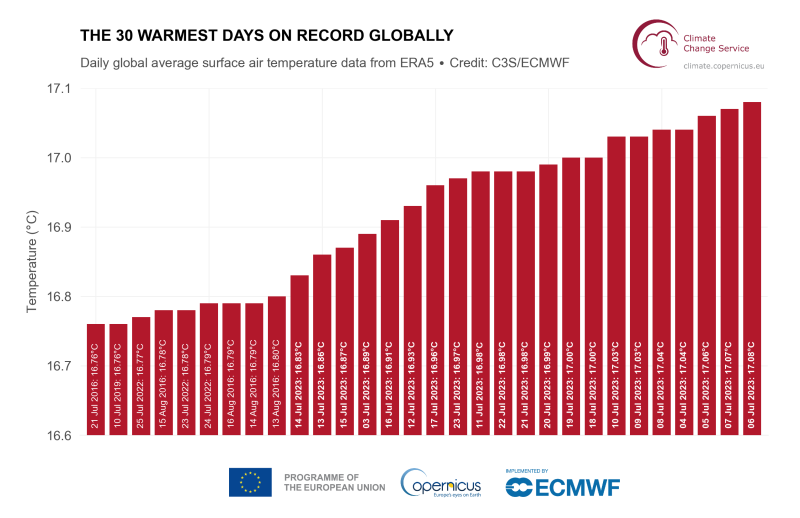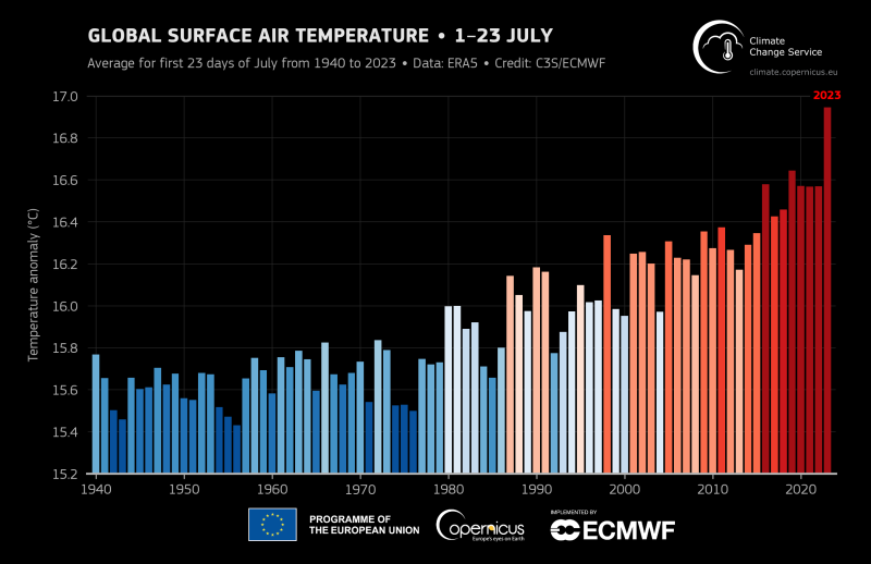 Άλλοι επιστήμονες του κλίματος επιβεβαίωσαν τα ευρήματα. Ο Karsten Haustein στο Πανεπιστήμιο της Λειψίας διαπίστωσε ότι ο κόσμος ήταν 1,5 C θερμότερος τον Ιούλιο του 2023 σε σχέση με τον μέσο Ιούλιο πριν από την εκβιομηχάνιση.