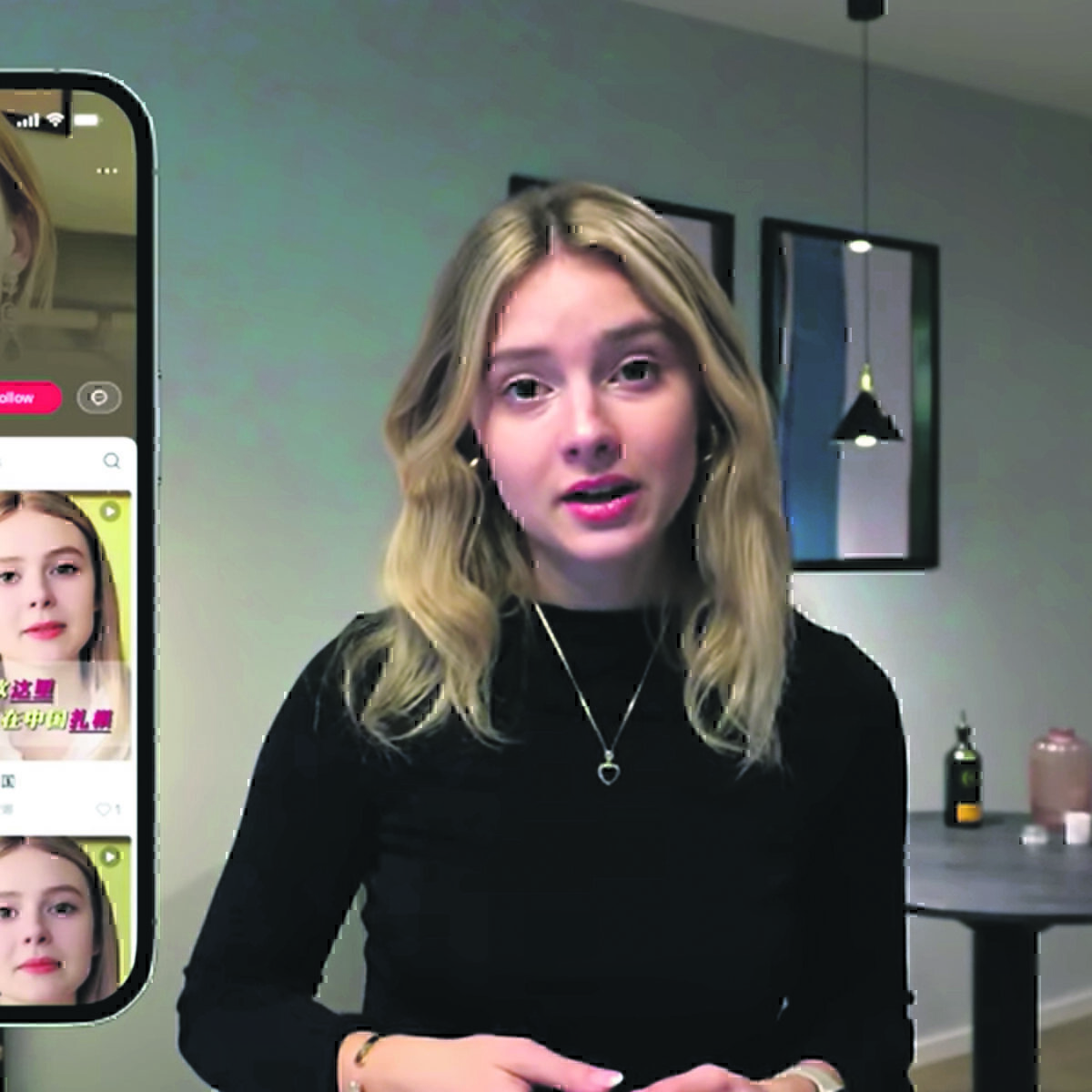 Πέρσι, τον Νοέμβριο, εγκαινίασε ένα κανάλι στο YouΥube, αλλά πολύ σύντομα έπεσε από τα σύννεφα ανακαλύπτοντας τι της είχε συμβεί. Κινέζοι χάκερς έκλεψαν την εικόνα της και τη μετάλλαξαν σε Ρωσίδα με τη βοήθεια της Τεχνητής Νοημοσύνης (ΑΙ), δημιουργώντας παραποιημένες fake προσωπικότητες, που αναλίσκονται σε ύμνους για τη «φίλη Κίνα».