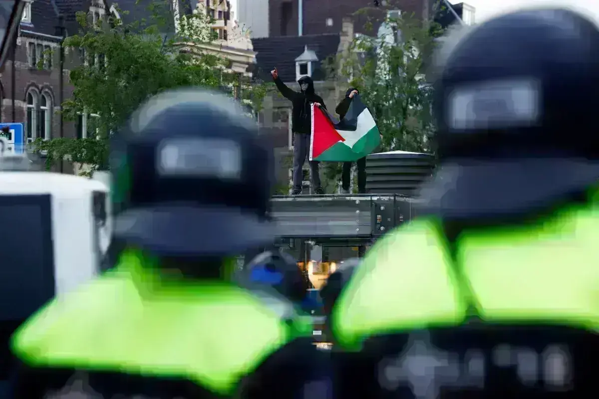 Φοιτητές στην Ολλανδία διαδηλώνουν κατά του πολέμου του Ισραήλ στη Γάζα από την περασμένη Δευτέρα. Κατά τη διάρκεια αυτών των κινητοποιήσεων ξέσπασαν συγκρούσεις μεταξύ διαδηλωτών και δυνάμεων της αστυνομίας στο πανεπιστήμιο του Άμστερνταμ.
