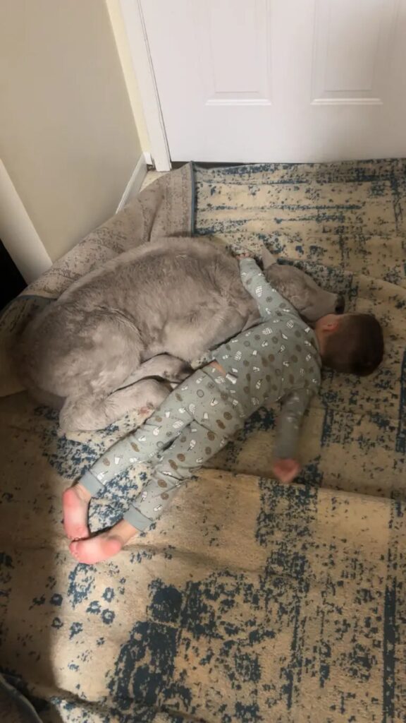 Μία από τις αξιολάτρευτες φωτογραφίες δείχνει το μοσχαράκι να κοιμάται αγκαλιά με το νυσταγμένο παιδί στη μία πλευρά του καναπέ, ενώ η κόρη της Σόρελ κοιμάται απλωμένη στην άλλη πλευρά. Σε άλλη φωτογραφία, ο μικρός φαίνεται να κοιμάται μπρούμυτα στο χαλί, με το χέρι του γύρω από το μοσχαράκι.