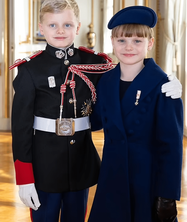 Τα δίδυμα φωτογραφήθηκαν κουνώντας τα χέρια από το μπαλκόνι του παλατιού μαζί με τους γονείς τους καθώς η χώρα γιόρταζε με τη μητέρα τους, με την πριγκίπισσα Σαρλίν να φορά ένα βαθύ κόκκινο φόρεμα με φαρδύ γιακά και ένα προσαρμοσμένο καπέλο σε στυλ μπερέ του Στίβεν Τζόουνς που ταίριαζε άψογα με την εμφάνιση της κόρης της.