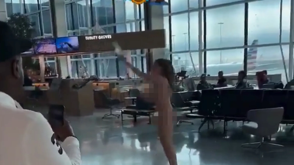 Το βίντεο δείχνει τη γυναίκα γυμνή καθώς τρέχει στο αεροδρόμιο, καταστρέφοντας μια τοποθετημένη τηλεόραση, πετώντας νερό και χορεύοντας προκλητικά ενώ οι περαστικοί την παρακολουθούν και την καταγράφουν με τα τηλέφωνά τους. Σε κάποια στιγμή, μια γυναίκα που περνούσε προσπαθεί να προσφέρει το παλτό της στη γυναίκα, αλλά εκείνη την απορρίπτει λέγοντας της «Άντε γα…» και τρέχει μακριά, επαναλαμβάνοντας τη φράση σε άλλους μάρτυρες καθώς απομακρύνεται.