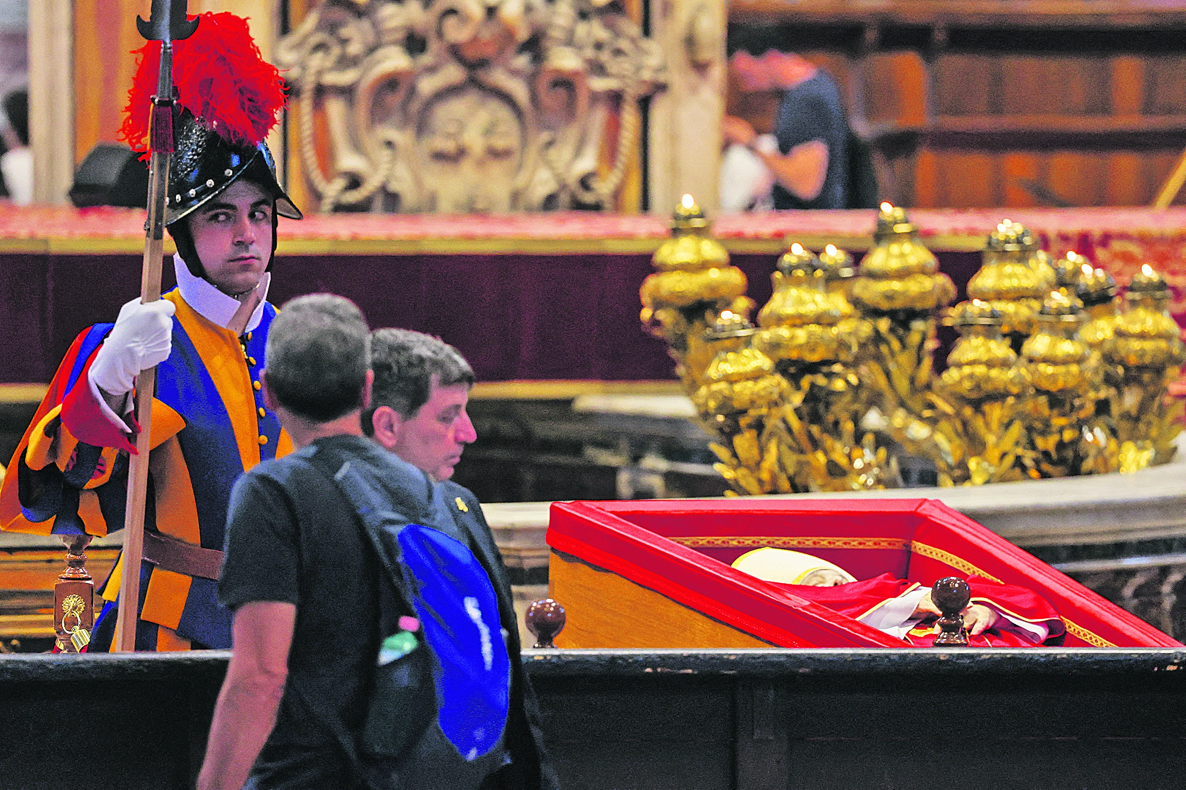 Χθες, το σκήνωμα του Πάπα Φραγκίσκου έφτασε στη Βασιλική του Αγίου Πέτρου για το τριήμερο λαϊκό προσκύνημα, εκεί όπου χιλιάδες πιστοί έχουν συγκεντρωθεί για να αποτίσουν φόρο τιμής στον εκλιπόντα Ποντίφικα. Ο παρεκκλήσιος ξενώνας της Αγίας Μάρθας, όπου διατηρούσε το παπικό του διαμέρισμα σφραγίστηκε με κόκκινη κορδέλα και βουλοκέρι.