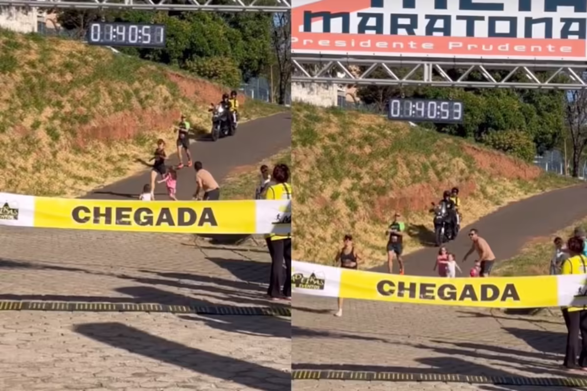 Στο βίντεο, που δημοσιεύτηκε από τον χρήστη του TikTok @sinomar_reporter, μια γυναίκα φαίνεται να τρέχει κάτω από ένα λόφο και να τρέχει προς τη γραμμή τερματισμού. Ένας άνδρας, που φαινόταν να είναι ο πατέρας, στάθηκε στο γρασίδι με δύο μικρά παιδιά. Κρατώντας τους τα χέρια, παρότρυνε τα παιδιά του να περπατήσουν στο μονοπάτι και προς τη μαμά τους.