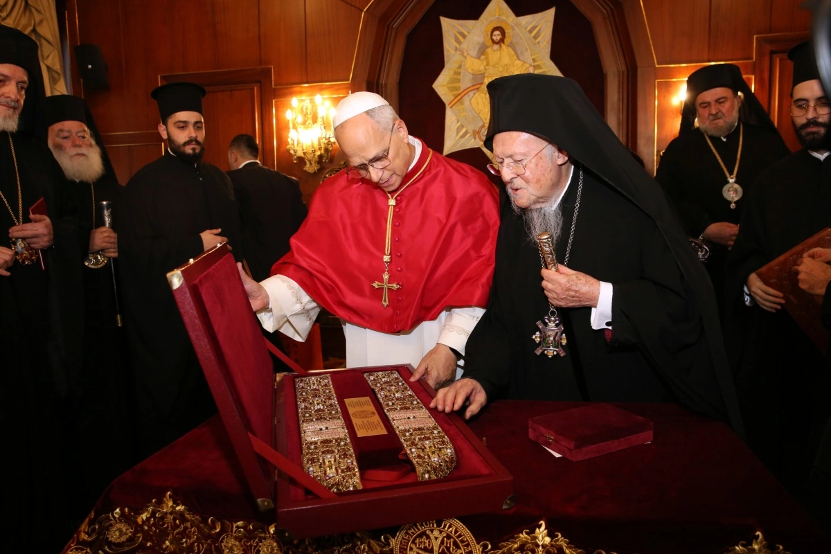 Ο Πάπας Λέων ο ΙΔ’ δώρισε στον Οικουμενικό Πατριάρχη Βαρθολομαίο ένα ψηφιδωτό με τον Παντοκράτορα.