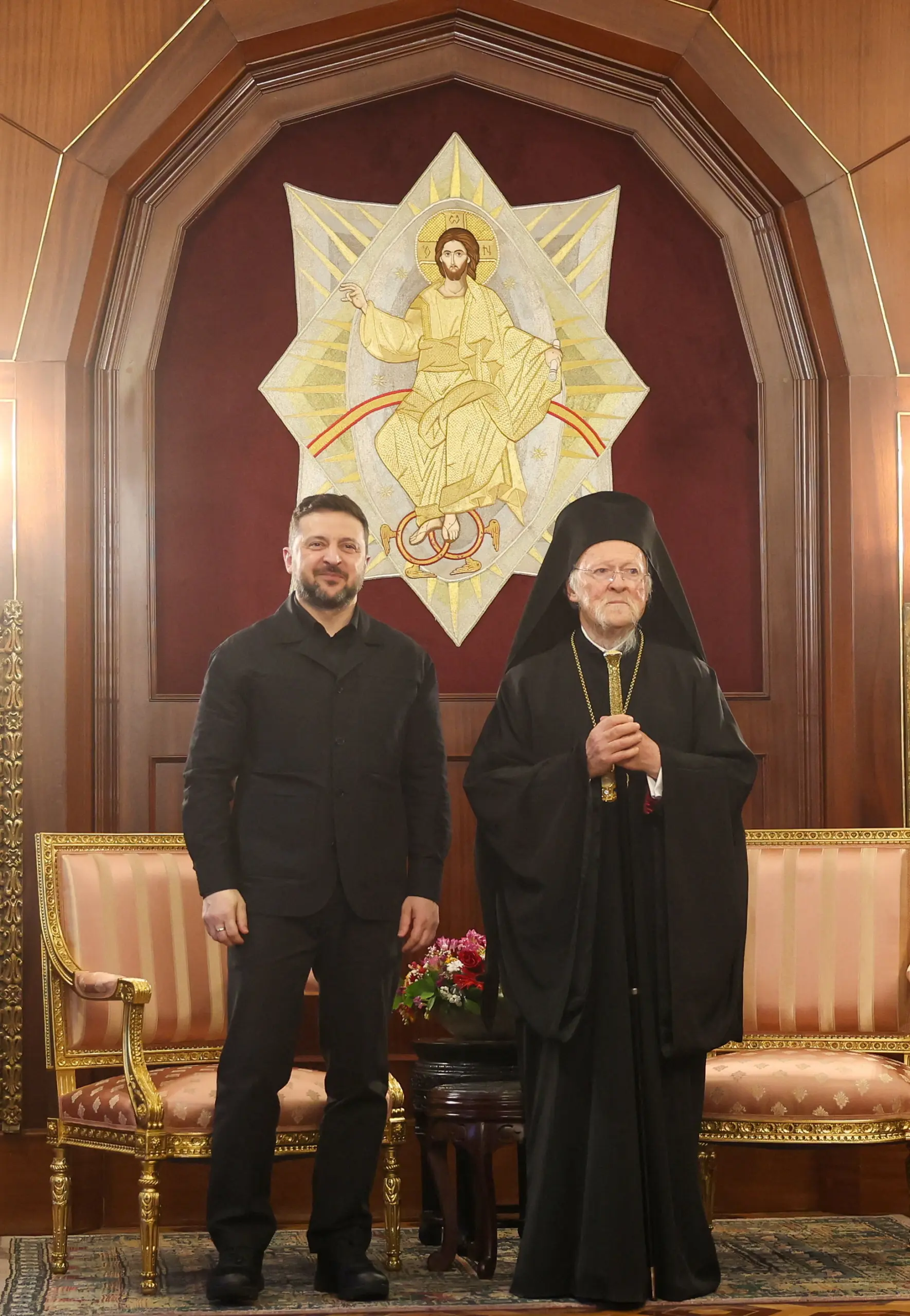 «Είμαστε κοντά στους συνανθρώπους μας που υποφέρουν στη Μέση Ανατολή, στην Ουκρανία και οπουδήποτε αλλού στον κόσμο», τόνισε ο Οικουμενικός Πατριάρχης, ο οποίος προέπεμψε τον Εξοχότατο Πρόεδρο της Ουκρανίας μέχρι τα προπύλαια του Οικουμενικού Πατριαρχείου.