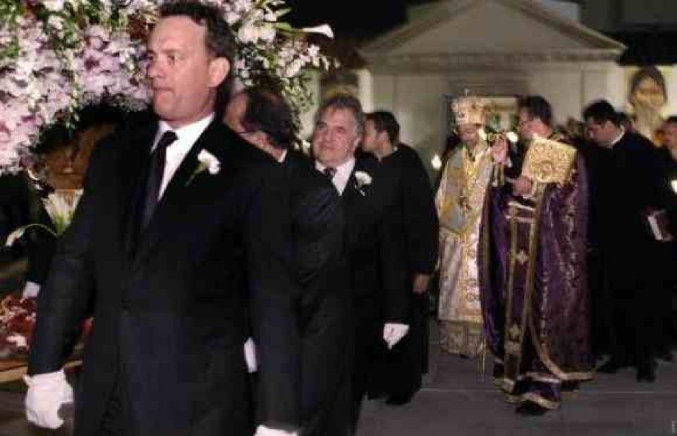 Ο Τομ Χανκς και ο Πατέρας Ιωάννης Μπάκας από τόν Ελληνικό καθεδρικό ναό της Αγίας Σοφίας στο Λος Άντζελες στο σπίτι του Διευθύνωντα Συμβούλου του FOX Τζιμ Γιαννόπουλος για τo Έλληνικό Ορθόδοξο Πάσχα. Παρεβρέθηκαν και οι Μελίνα Κανακαρίδη, Michael Chicklis, Μαρία Μενούνος και πολλές άλλες Ελληνο-αμερικανικές διασημότητες.