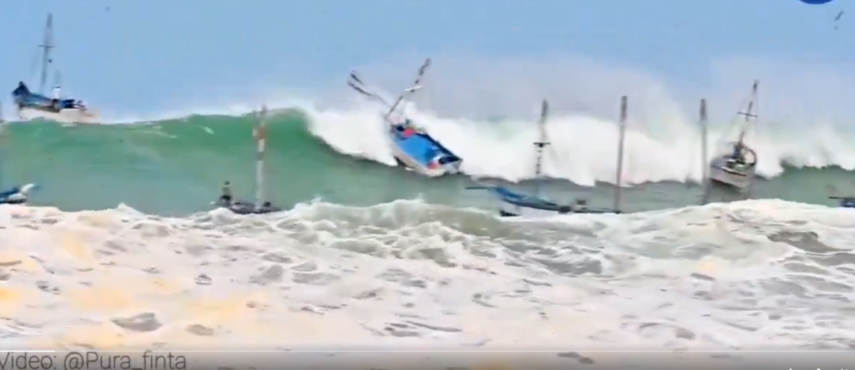 Η φουσκοθαλασσιά, με κύματα που φθάνουν ως και τα τέσσερα μέτρα, πλήττει επίσης αγκυροβόλια και αεροδρόμια στις περιοχές Τούμπες και Πίουρα, στα σύνορα με τον Ισημερινό.