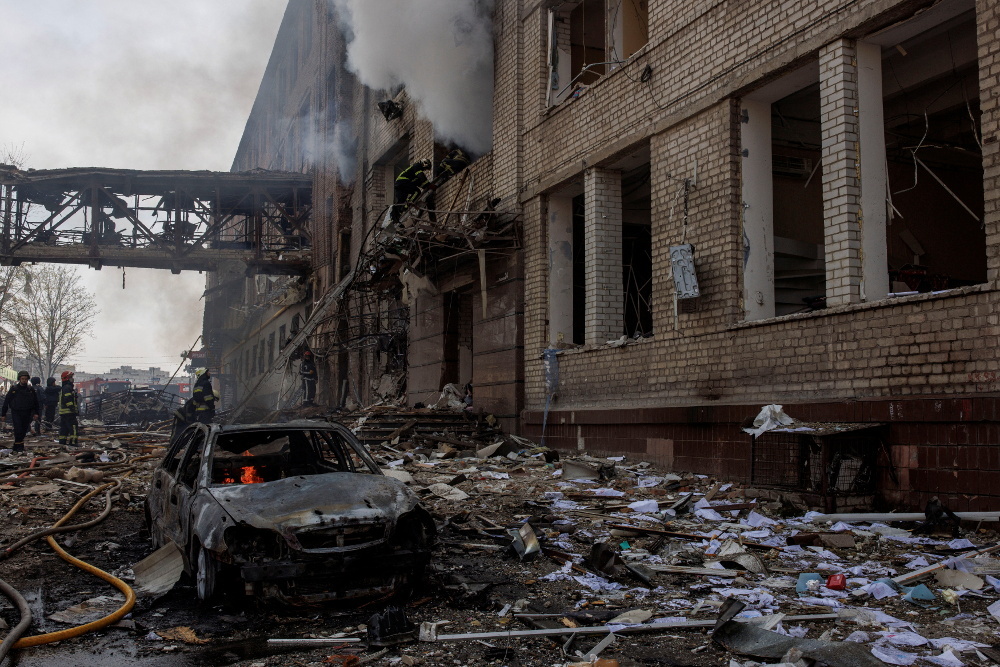 Ο περιφερειάρχης του Χάρκοβου στην ανατολική Ουκρανία δήλωσε πως τουλάχιστον ένας άνθρωπος σκοτώθηκε και 18 τραυματίστηκαν σε πυραυλικό πλήγμα. Στη Μικολάγιφ, μια πόλη κοντά στο νότιο μέτωπο, η Ρωσία ανέφερε ότι έπληξε ένα εργοστάσιο επισκευής στρατιωτικών οχημάτων.