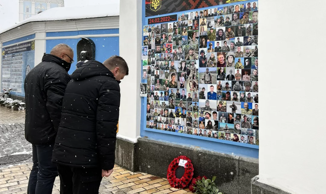 Ο Χενάρε επισκέφθηκε τον Τοίχο Μνήμης των Πεσόντων υπέρ Ουκρανίας για να αποτίσει φόρο τιμής στα θύματα του πολέμου.