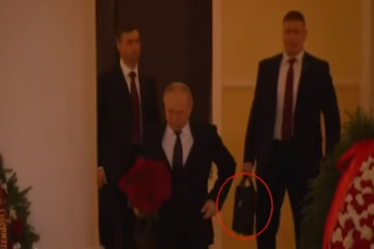 Ο Βλαντιμίρ Πούτιν κρατούσε κόκκινα τριαντάφυλλα και επισκέφθηκε, σύμφωνα με δημοσίευμα της Sun, τον Καθεδρικό Ναό του Χριστού Σωτήρος, για να τιμήσει τον Βλαντιμίρ Ζιρινόφσκι. Όμως, την προσοχή τράβηξε ο άνδρας που ήταν κοντά του και κρατούσε σε προφανή θέση μια βαλίτσα «με τα πυρηνικά».