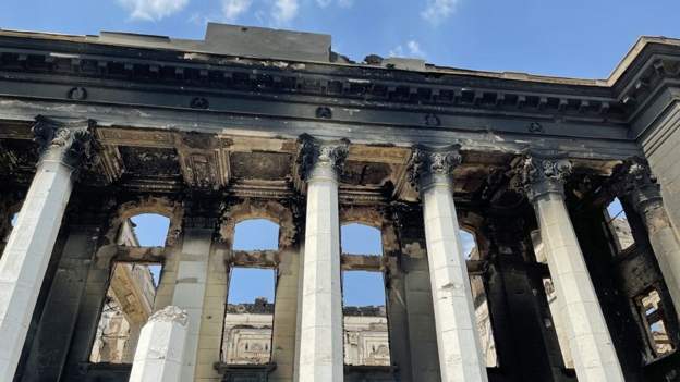 Οι αλλεπάλληλοι ρωσικοί βομβαρδισμοί αφήνουν πίσω τους άμαχους νεκρούς και έχουν ήδη καταστρέψει μεγάλο τμήμα της παλιάς, ιστορικής πόλης. Το άλλοτε επιβλητικό Παλάτι του Πολιτισμού στο Λισιτσάνσκ είναι πλέον ένα απανθρακωμένο κέλυφος, με τις κολώνες του μαυρισμένες και σπασμένες.