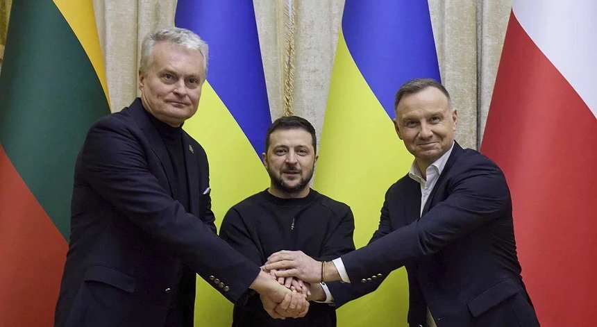 Today in Lviv, together with Presidents @ZelenskyyUa and @GitanasNauseda, we are talking in the Lublin Triangle format about military support for Ukraine against Russian aggression and about Ukraine’s integration with the EU and NATO. pic.twitter.com/iYSWqEdYWL